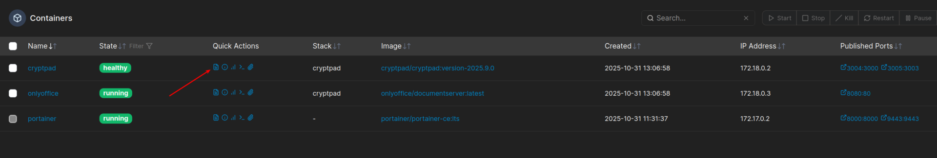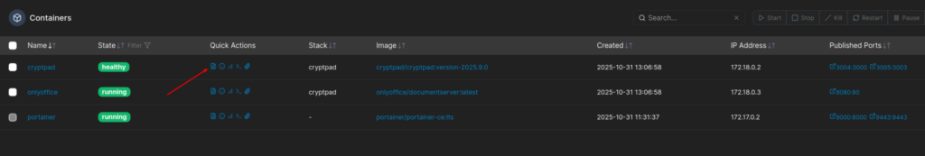 • Es wird nun ein Container mit Cryptpad und einer mit OnlyOffice erstellt. Cryptpad verbindet sich automatisch mit dem OnlyOffice Container.